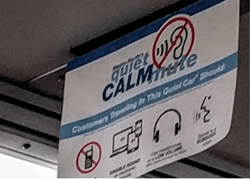 Ridiculously small sign that has no chance in hell of alerting anyone to the rules of the Quiet Car®