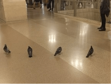 Story idea: In the wee hours of the morning, the bleeding victim of a mugging regains consciousness inside a locked, “out of order” toilet stall in the bowels of Grand Central and sends an SOS message on a tissue tidbit tucked into the wing of a carrier pigeon, reaching the bathroom attendant as she starts her shift, saving the victim’s life.