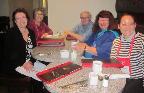 Clockwise, L to R: Jane Cleland, Linda Landrigan, John Landrigan, Melodie Campbell, Jackie Sherbow. Photo courtesy of Brendan DuBois.