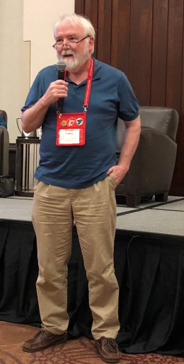 Martin Edwards presents at the event honoring EQMM. Photo courtesy of Josh Pachter.