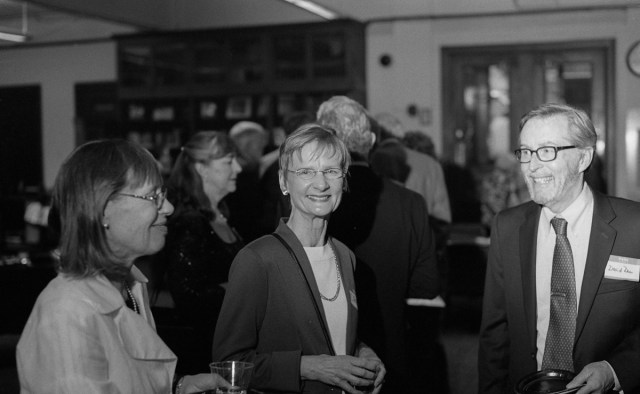L to R: Peter Lovesey, Brendan DuBois, AHMM editor Linda Landrigan. Photo by Jackie Sherbow.