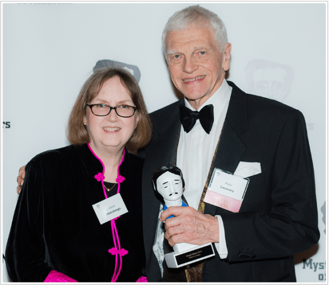 Janet Hutchings and Peter Lovesey with his Edgar Award.