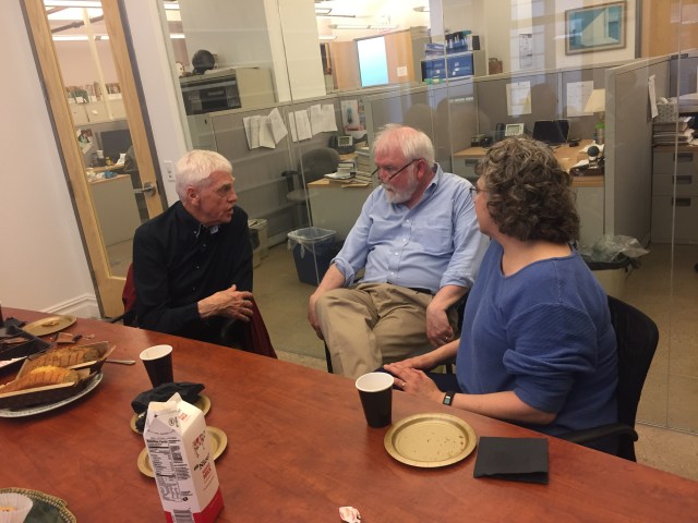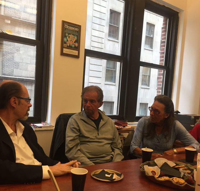 L to R: Jeffery Deaver, Doug Allyn, Eve Allyn at the Dell Magazines office. Photo by Jackie Sherbow.