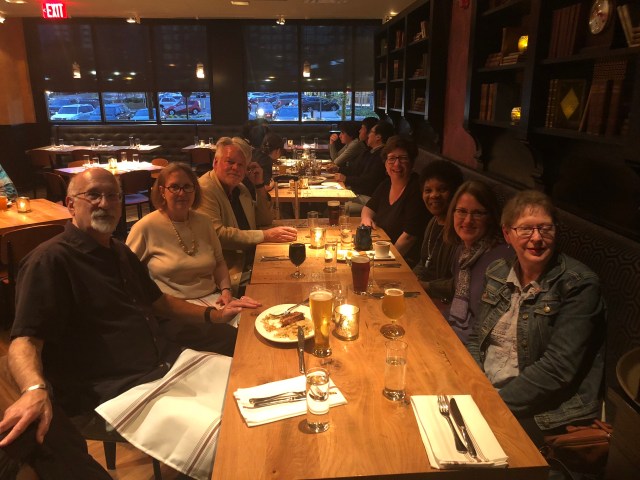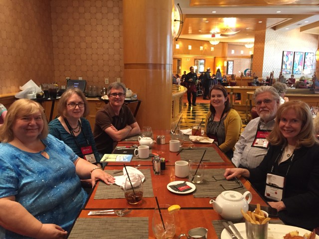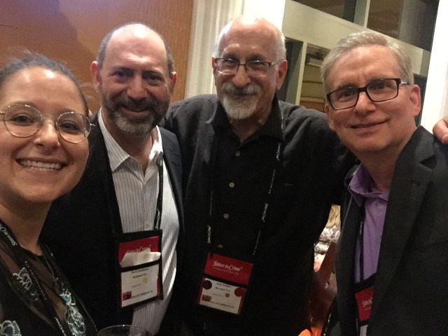 For me, Malice began on Friday evening, with a dinner in the Pike & Rose development in North Bethesda, with authors Dana Cameron, Frankie Y. Bailey, Christine Poulson, Dale Andrews, and Josh and Laurie Pachter. At subsequent meals (one also pictured below), I had the pleasure of reconnecting with a number of the talented people who contribute fiction, reviews, and nonfiction to our pages, including Doug Greene, the founder of Crippen & Landru, the genre’s leading publisher of single-author short-story collections, and Jeffrey Marks, who has recently taken over as Crippen & Landru’s publisher.