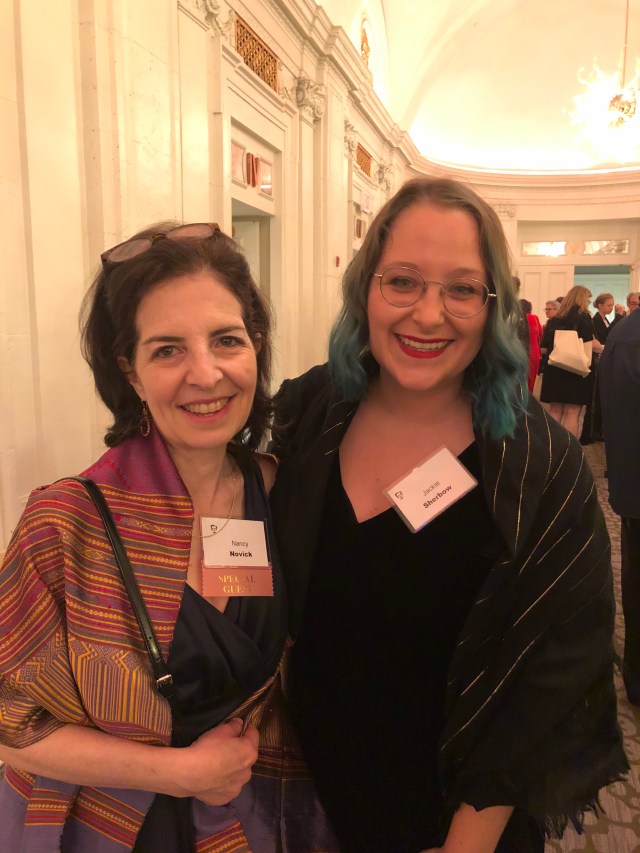 The culminating event of Edgars week, the Edgar Allan Poe Awards banquet, followed close on our party. Linda Landrigan’s eloquent acceptance of the Ellery Queen Award was one highlight of the night; another was Doug Allyn’s presentation of the Fish Award to Nancy Novick for her story “How Does He Die This Time?” (originally published in our September/October 2018 issue and currently available in our podcast series) and yet another (the first unknown, and quite a thrill!) the announcement that Art Taylor (who also got his start in EQMM’s Department of First Stories) had won the Edgar for “English 398: Fiction Workshop,” from the July/August 2018 EQMM and now in our podcast series. I blogged about Nancy’s and Art’s stories earlier on this site, so I’ll direct you there if you want a hint of what they’re about before listening to the podcasts.
