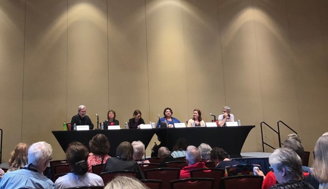 The Agatha Best Short Story Panel: Moderator Michael Bracken, Leslie Budewitz, Susanna Calkins, Barb Goffman, Tara Laskowski, Art Taylor