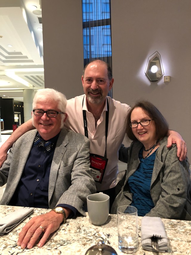 A week after the Edgars, we were off to the Malice Domestic convention. There I met up with a lot of old friends, and again, made a few new aquaintances—notable among them Edith Maxwell, one of the convention’s Agatha Award nominees for best historical novel, who will have her first short story in EQMM soon. At the same afternoon event where I had the pleasure of chatting with Edith, I caught up with Edwin Hill, another EQMM Department of First Story-er, who was up for the Agatha for best first novel, and Barb Goffman, a multiple Agatha nominee and past Agatha winner who was up for the best short story Agatha for her EQMM (November/December 2018) debut “Bug Appétit”—one of the best holiday stories I have ever read (listen to her podcast of it!).