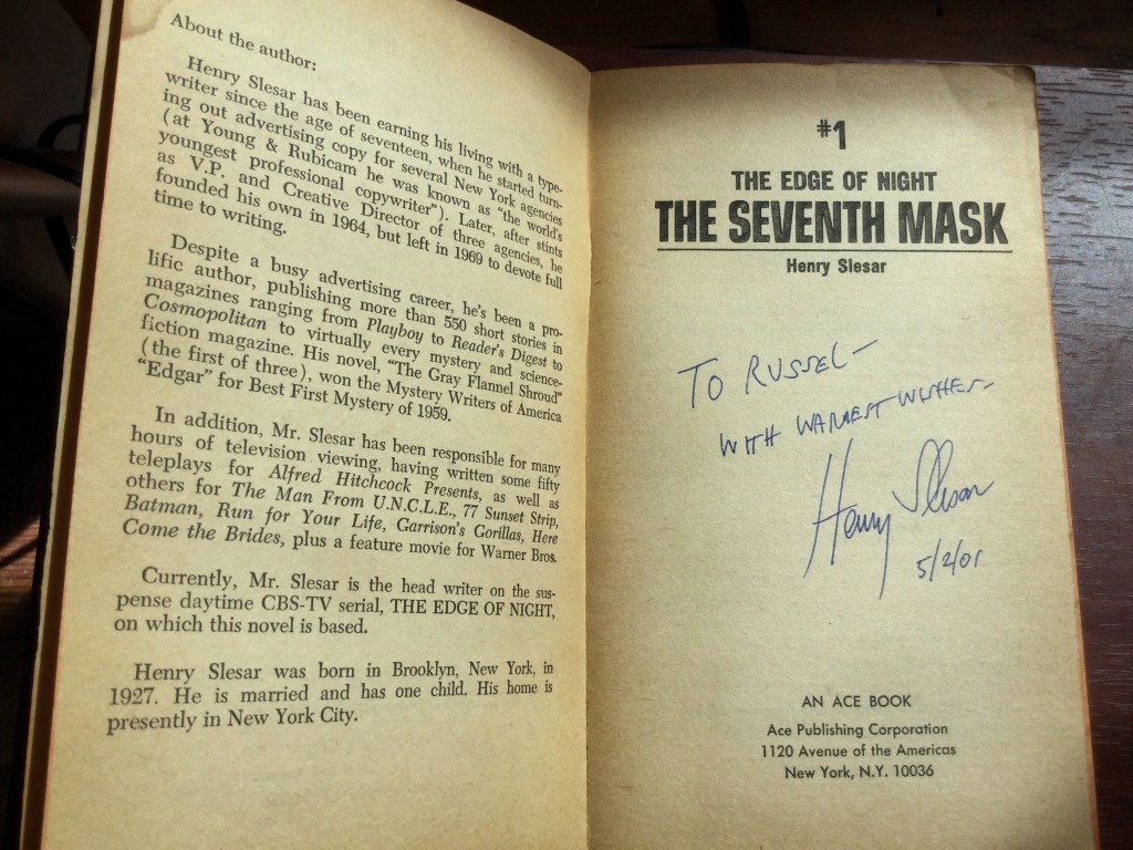 When I was a kid I would sometimes sit with my grandmother as she watched “my stories.” I was an adult before I realized that the reason the only one i enjoyed was The Edge of Night was that it was based in mystery, not romance. Slesar was a great short storyist.