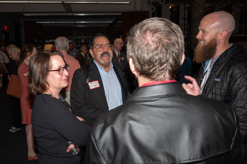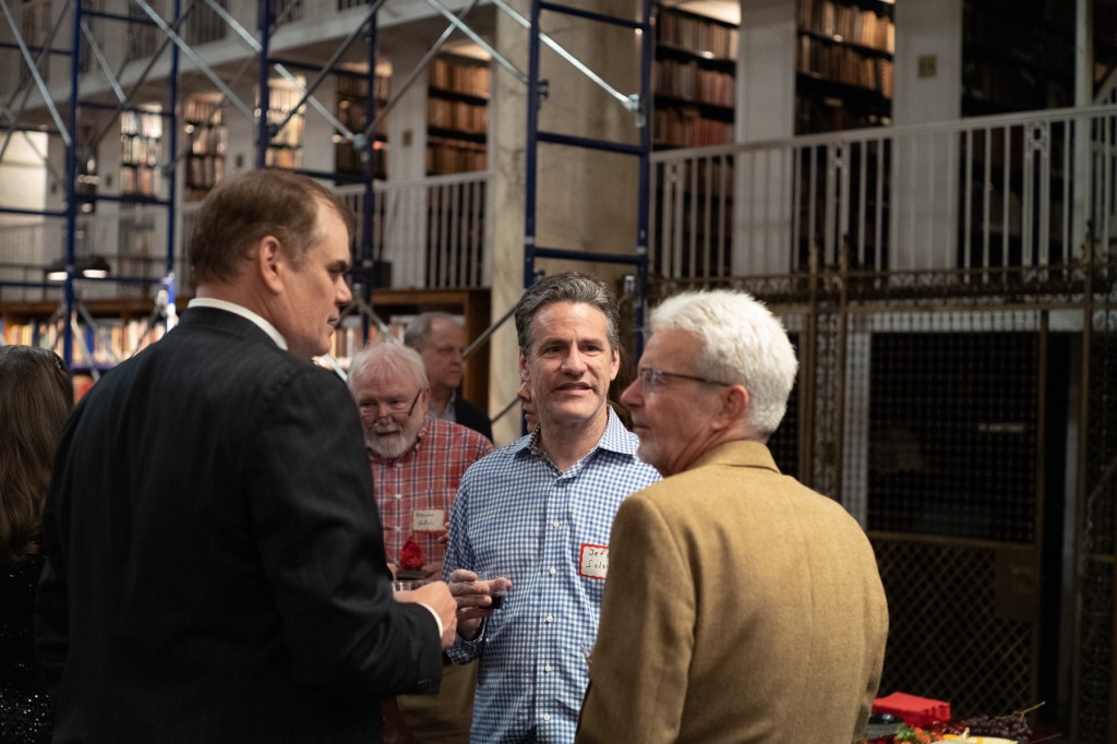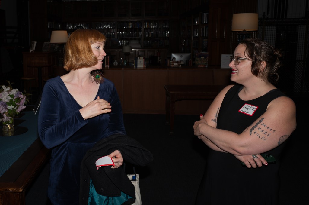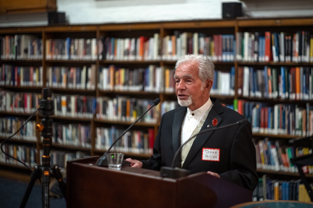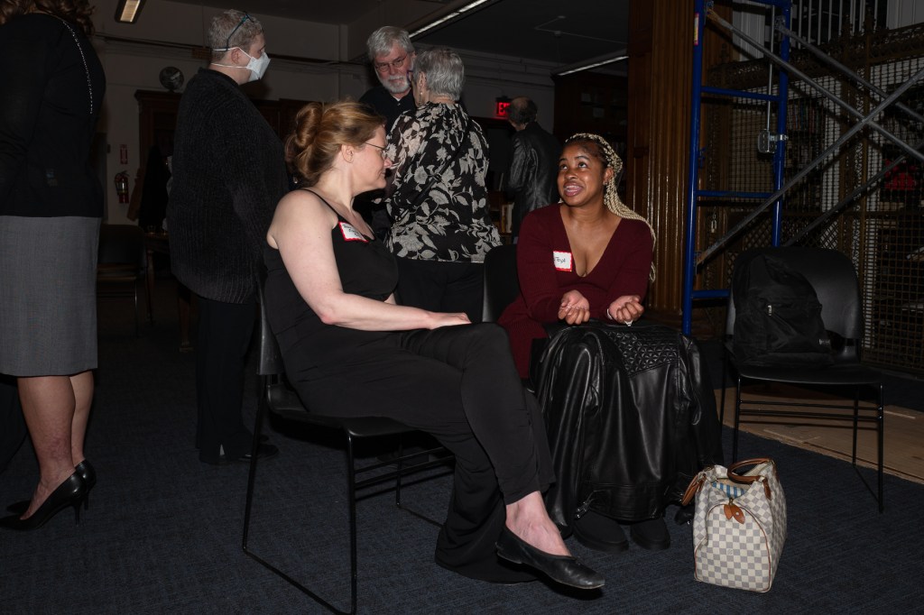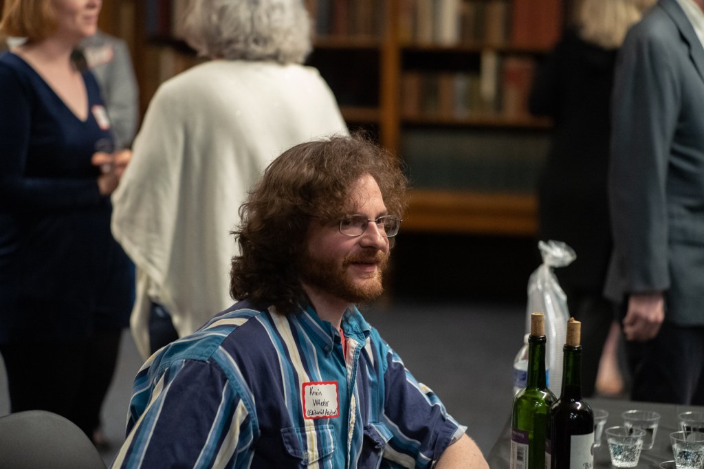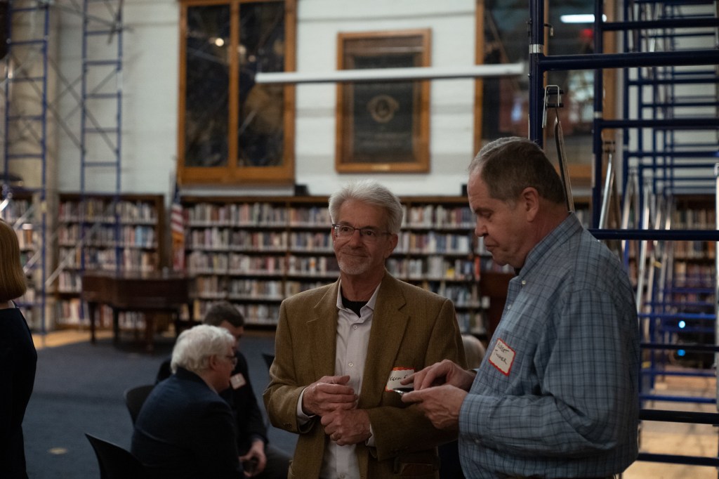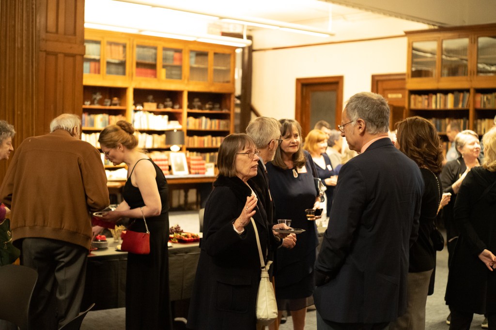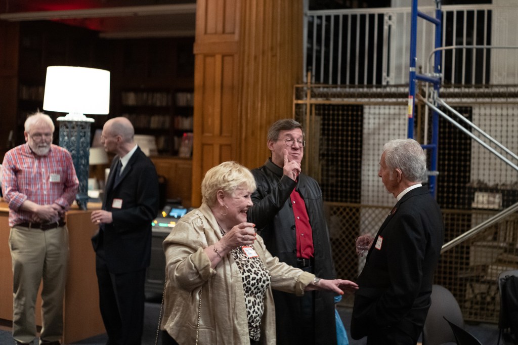 It’s my pleasure this week to herald the return of our photo gallery of events surrounding the Edgar Allan Poe Awards in New York City and the Malice Domestic convention in Bethesda, Maryland! The festivities all kicked off for the Dell Mystery Magazines with our pre-Edgars party, at which it’s been our custom for many years to present the EQMM Readers Awards. The Readers Awards presentation had to be done virtually in 2020 and 2021. In 2022, we held an in-person gathering, but it was a scaled-down celebration, with few guests attending from out of town and only two of the year’s four Readers Award winners present. As you’ll see from the photos below, last week’s party filled the house (which was, as in several previous years, the library of the General Society of Mechanics and Tradesmen, on 44th Street in Manhattan). Attendees included third-place Readers Award winner Anna Scotti, who flew in from California to receive her scroll for “Schrödinger, Cat” (EQMM March/April 2022); Doug Allyn, whom we hadn’t seen since our 2019 pre-Edgars party, who took second-place honors for “Blind Baseball” (EQMM May/June 2022); and W. Edward Blain, who captured readers’ votes with his pandemic-inspired story “The Secret Sharer” (EQMM July/August 2022), which took first place from a field of more than a hundred stories published in the magazine in 2022.