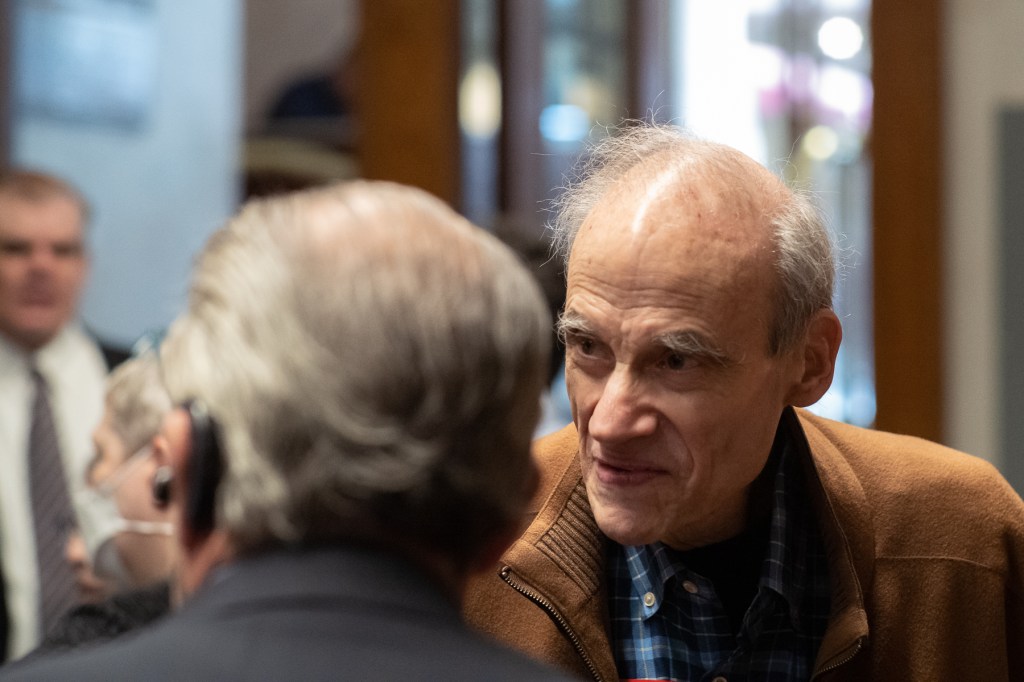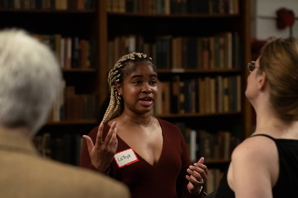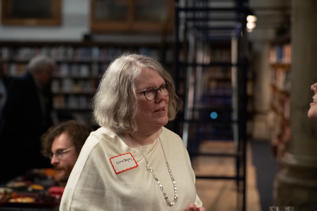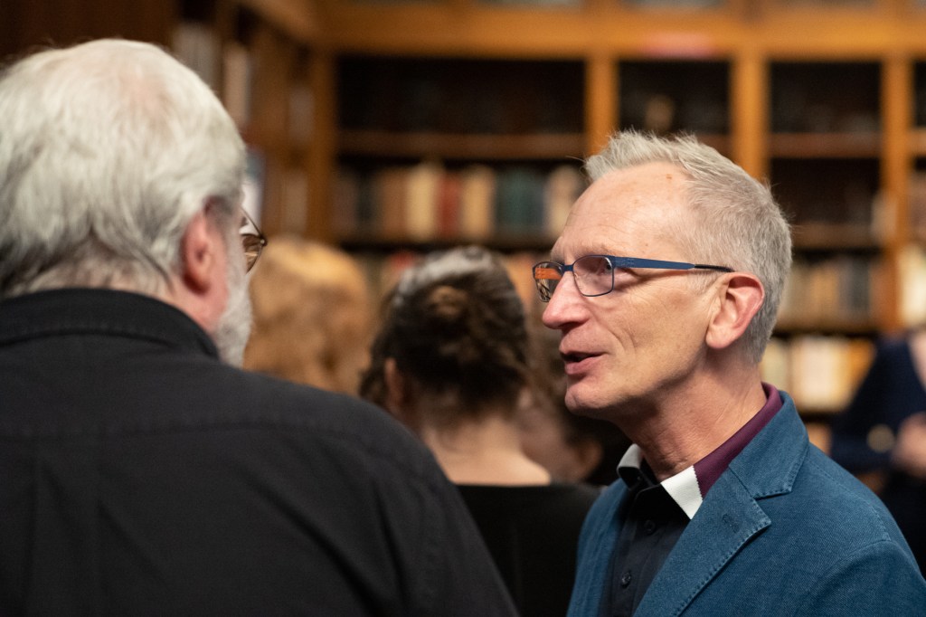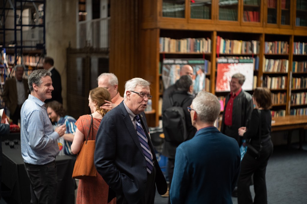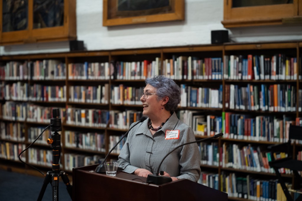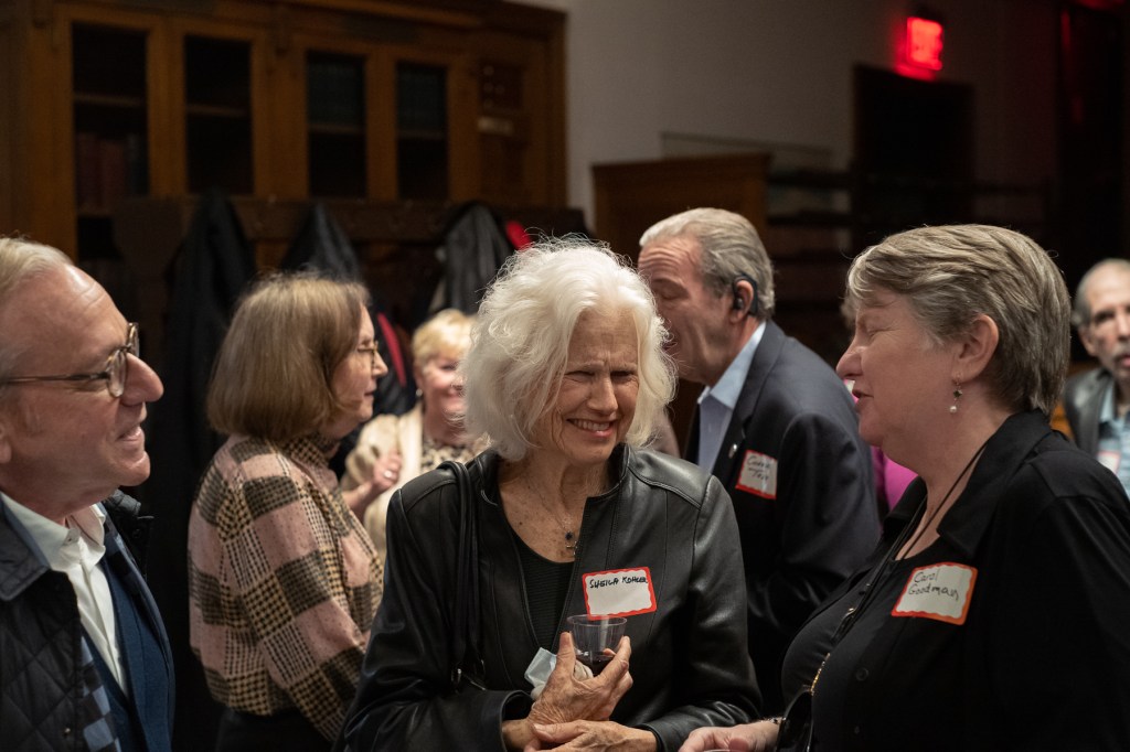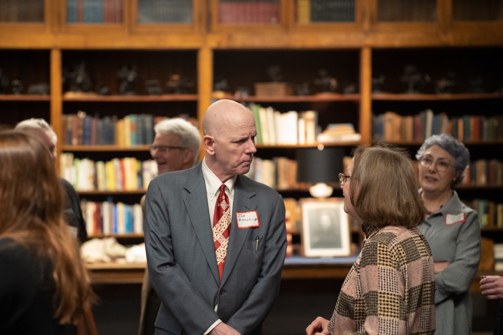 It’s my pleasure this week to herald the return of our photo gallery of events surrounding the Edgar Allan Poe Awards in New York City and the Malice Domestic convention in Bethesda, Maryland! The festivities all kicked off for the Dell Mystery Magazines with our pre-Edgars party, at which it’s been our custom for many years to present the EQMM Readers Awards. The Readers Awards presentation had to be done virtually in 2020 and 2021. In 2022, we held an in-person gathering, but it was a scaled-down celebration, with few guests attending from out of town and only two of the year’s four Readers Award winners present. As you’ll see from the photos below, last week’s party filled the house (which was, as in several previous years, the library of the General Society of Mechanics and Tradesmen, on 44th Street in Manhattan). Attendees included third-place Readers Award winner Anna Scotti, who flew in from California to receive her scroll for “Schrödinger, Cat” (EQMM March/April 2022); Doug Allyn, whom we hadn’t seen since our 2019 pre-Edgars party, who took second-place honors for “Blind Baseball” (EQMM May/June 2022); and W. Edward Blain, who captured readers’ votes with his pandemic-inspired story “The Secret Sharer” (EQMM July/August 2022), which took first place from a field of more than a hundred stories published in the magazine in 2022.