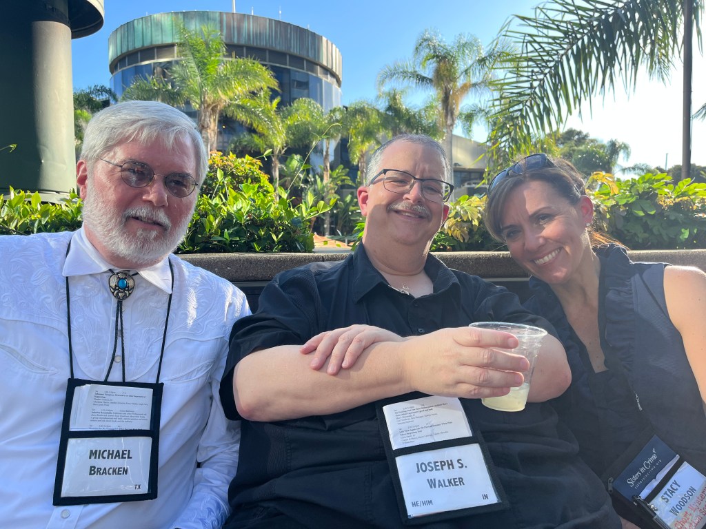 Friday night, I was honored to give one of the several traditional toasts at the Nero Wolfe Banquet (put on each year by The Wolfe Pack). Saturday evening before the Agatha Awards banquet and presentation, authors and friends of the Dell mystery magazines met poolside for a toast and get-together, which was a treat. And on Sunday Chris Dreith, Rob Pierce, Julie Leo, and I closed out the conference with a panel about writing at different lengths (“The Long and Short of It”) in the very last programming slot.