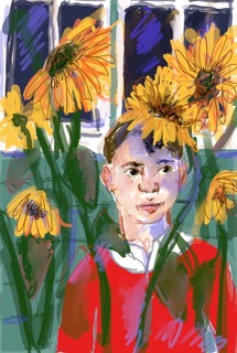 While Mom and Dad were bundling everything from kitchen supplies to the big white china eagle crucial to the dining room decor, I got a precious week’s reprieve from elementary school. Needless to say, I loved the place with the wraparound porches, the visiting sailors dormitory in the attic, and the living room with the vast fireplace and the interesting library. There was beach access by a track along the neighbor’s spectacular gardens and, by the house itself, an interesting border of sunflowers, cherry tomatoes, and lettuce, destined all those years later, to be Henry’s favorite hiding place.